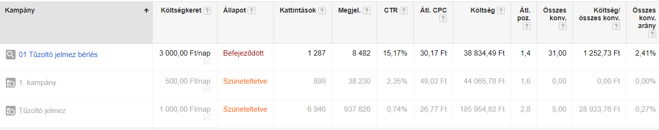Mielőtt felkeresett minket, szakértő bevonása nélkül, saját maga készítette el a Google AdWords kampányát. 2013-ban felállította az 1. kampányt, amelyre 44.065 Ft-ot költött, 0 db konverziót szerzett. A kampánybeállításokban, kulcsszó célzásokban több hibát is elkövetett, az (el nem ért) eredmények magukért beszélnek.